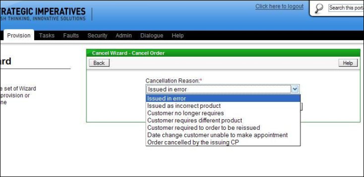 The next screen prompts for the reason for the cancellation to be entered, this is picked from a drop down list, see below: