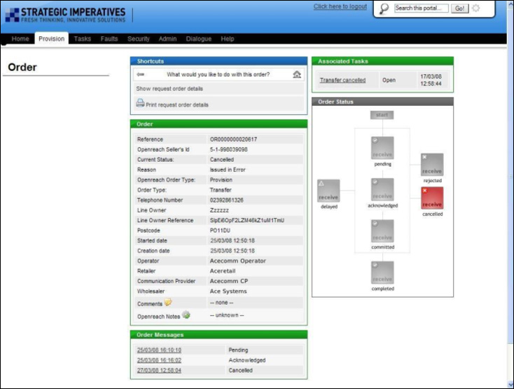 This screen also shows the current order status - it is important to note that an order can only be cancelled if the current status is either "Acknowledged" or "Committed" (as well as being before the PONR).